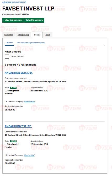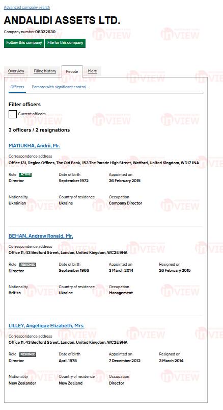 Так, Матюха з 2015 року керує лондонською компанією Andalidi assets LTD. Вона своєю чергою зазначена у членах правління Favbet invest LLP, яка зареєстрована в тій же будівлі в Лондоні. До 2014 року першою компанією керувала громадянка Нової Зеландії Анжеліка Елізабет Ліллей (Angelique Elizabeth Lilley). Це ім’я варто запам’ятати, адже ця жінка пов’язана з іншими особами з групи компаній-«пралень».