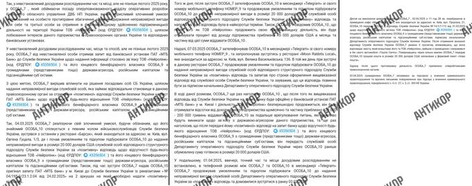 У рішенні суду йдеться про те, що оперуповноважений відділу оперативних розробок Київського обласного управління Департаменту внутрішньої безпеки Національної поліції через свого знайомого, який контактує зі службовими особами Служби безпеки України, запропонував хабар у розмірі 20 000 доларів за надання відповіді щодо відсутності будь-якого відношення ТОВ «Нейролінк» та його кінцевого бенефіціарного власника до громадян держави-агресорки, російського капіталу та до підсанкційних суб`єктів. Поліцейський діяв у змові з керівництвом згаданого підприємства.