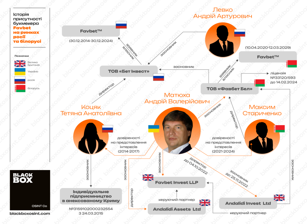 Favbet Матюхи не аннулював торгівельні марки у Росії та Білорусі, а в Україні ухиляється від сплати податків
