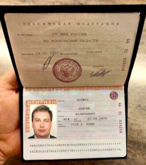 У травні 2022 року — через три місяці після вторгнення — Головне управління МВС РФ по Московській області видало Андрію Валерійовичу Матюсі паспорт громадянина Російської Федерації. Фото цього документа облетіло українські соцмережі та телеграм-канали. Звичайно, сам Матюха публічно заявив, що документ — фейк. Але жодних юридично завірених спростувань не надав. МВС РФ на запити журналістів не відповідає, а в українських офіційних базах перевірку на друге громадянство поки не проведено або не оприлюднено.